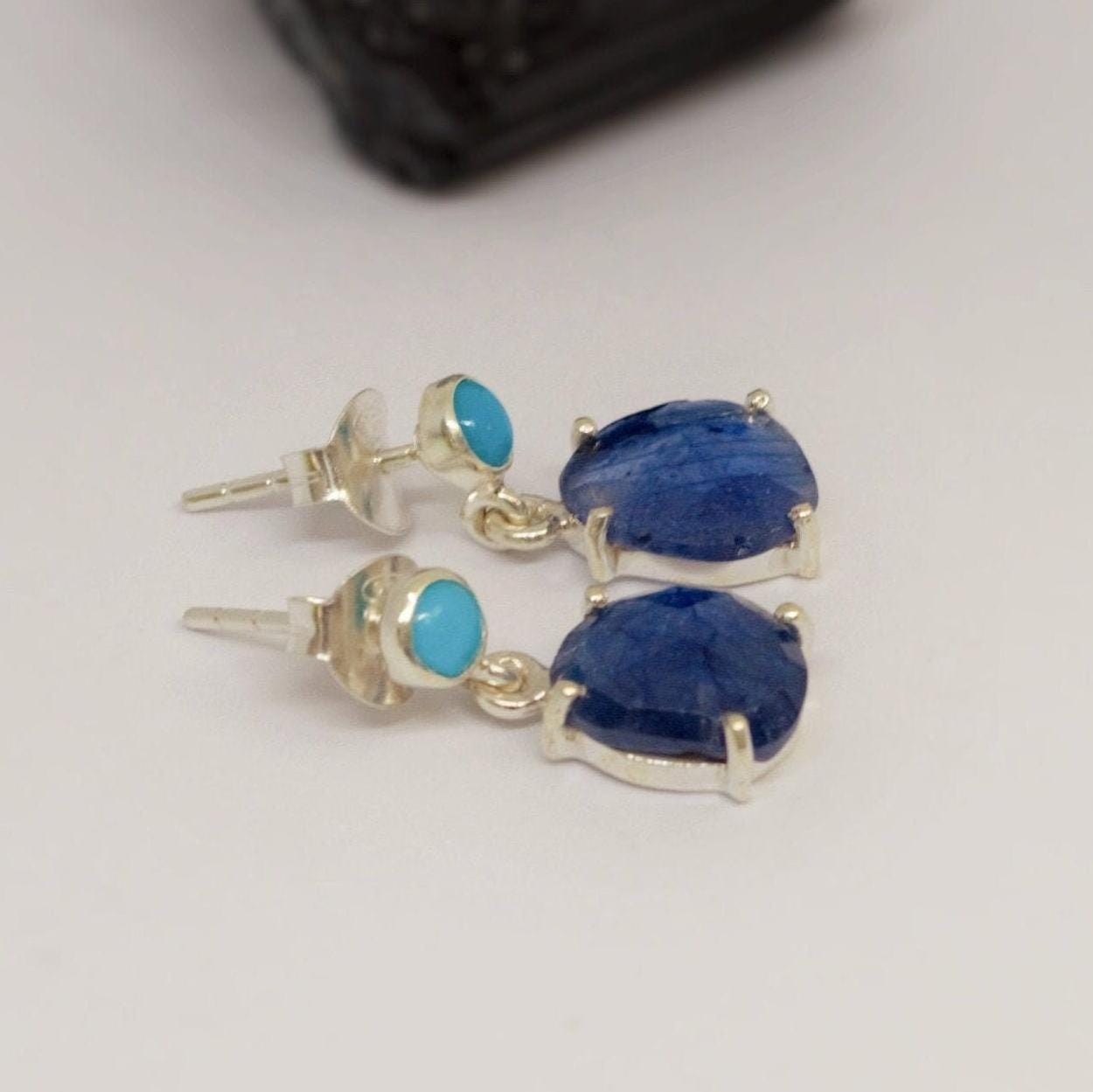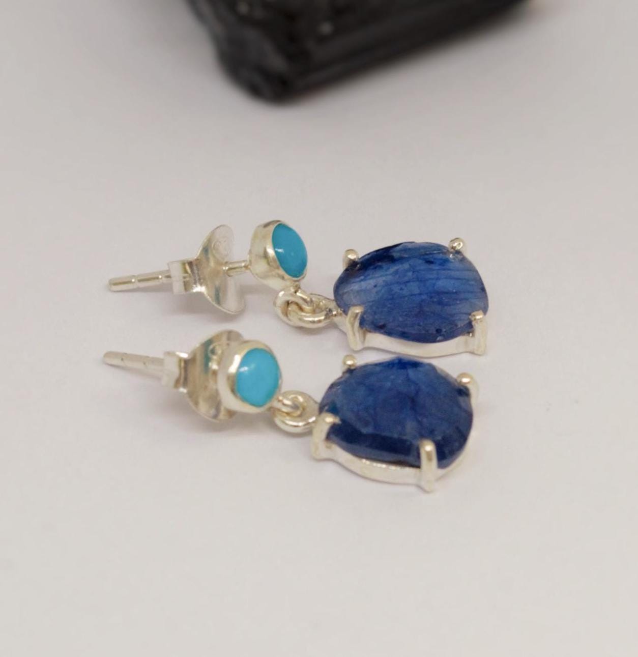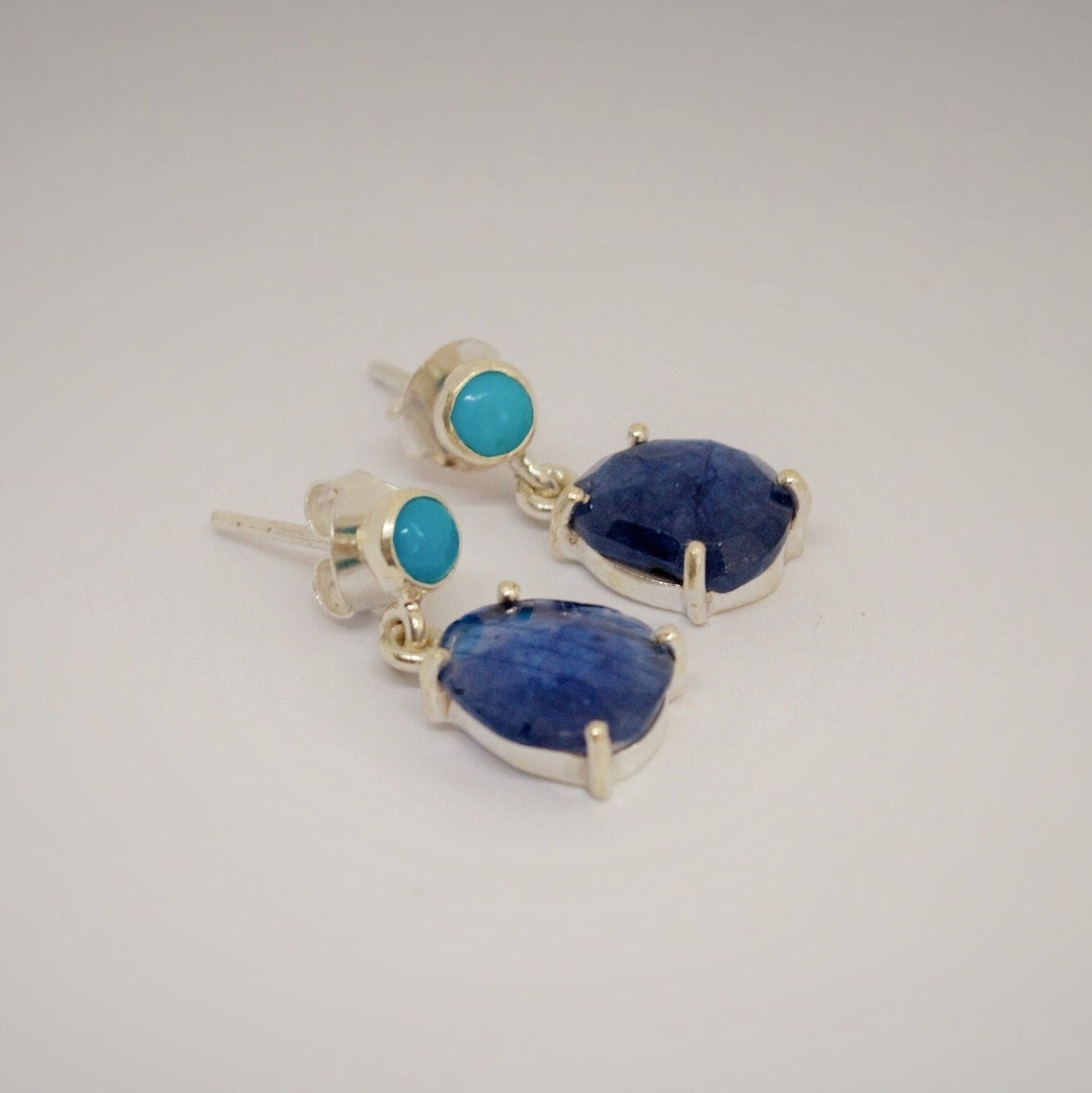 Blauer Saphir, Türkis Ohrringe, Sterling Silber Tropfen Ohrringe, September, Dezember Geburtsstein, Geburtstagsgeschenk für Sie, Süßer Edelstein