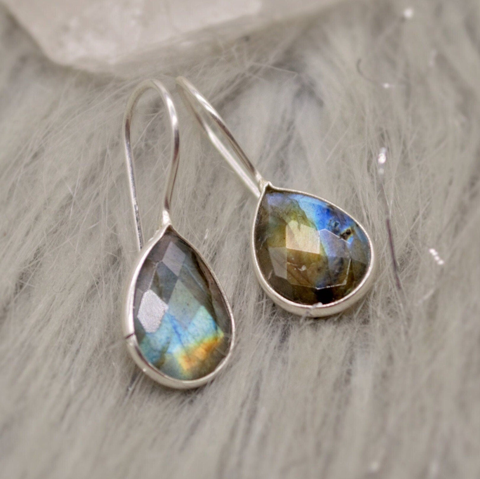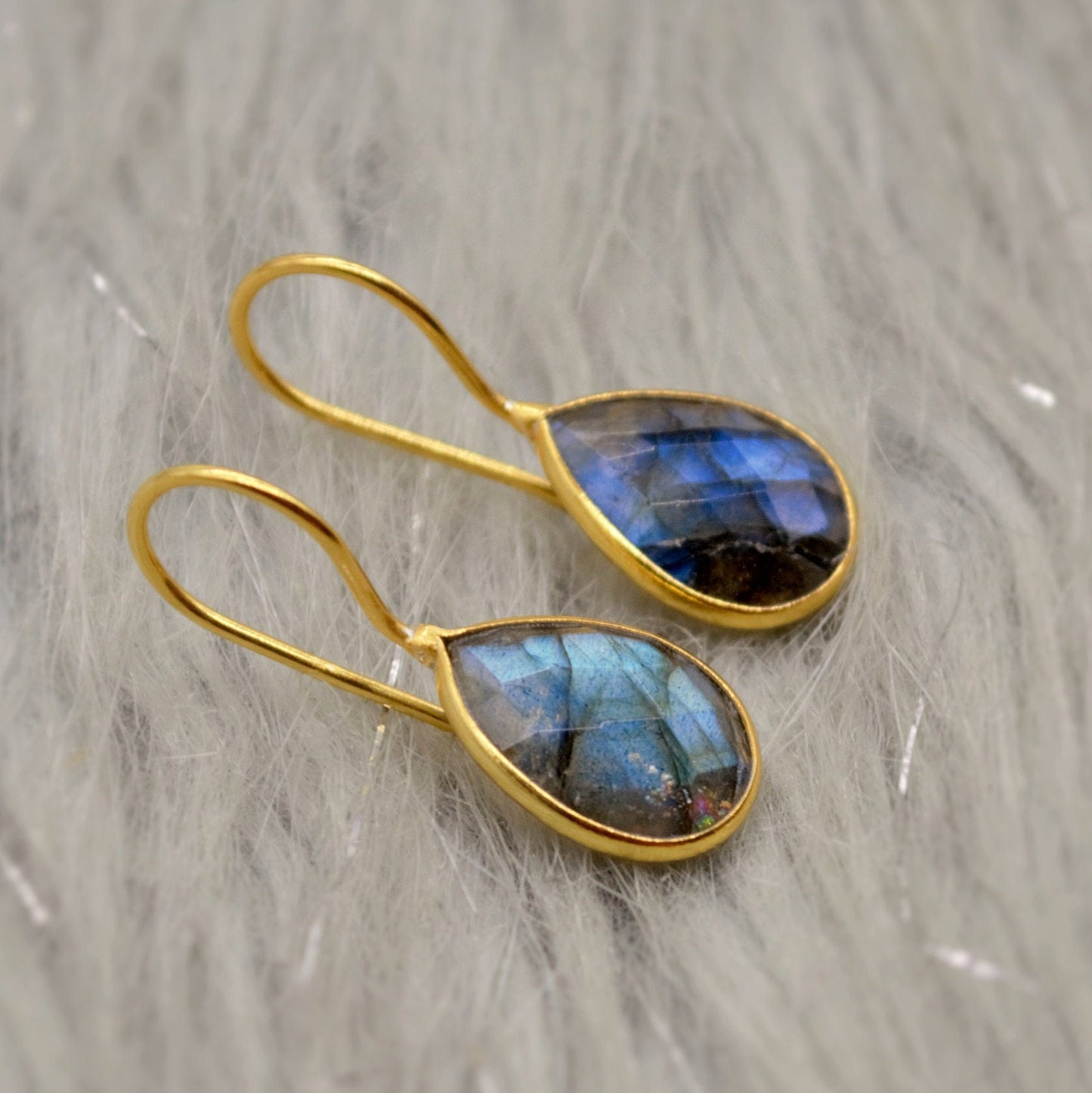 Labradorit Silber Ohrringe, Vergoldetes Sterling Silber, handgefertigte Edelstein Ohrringe, Labradorit Stein Schmuck, Geschenk für Sie