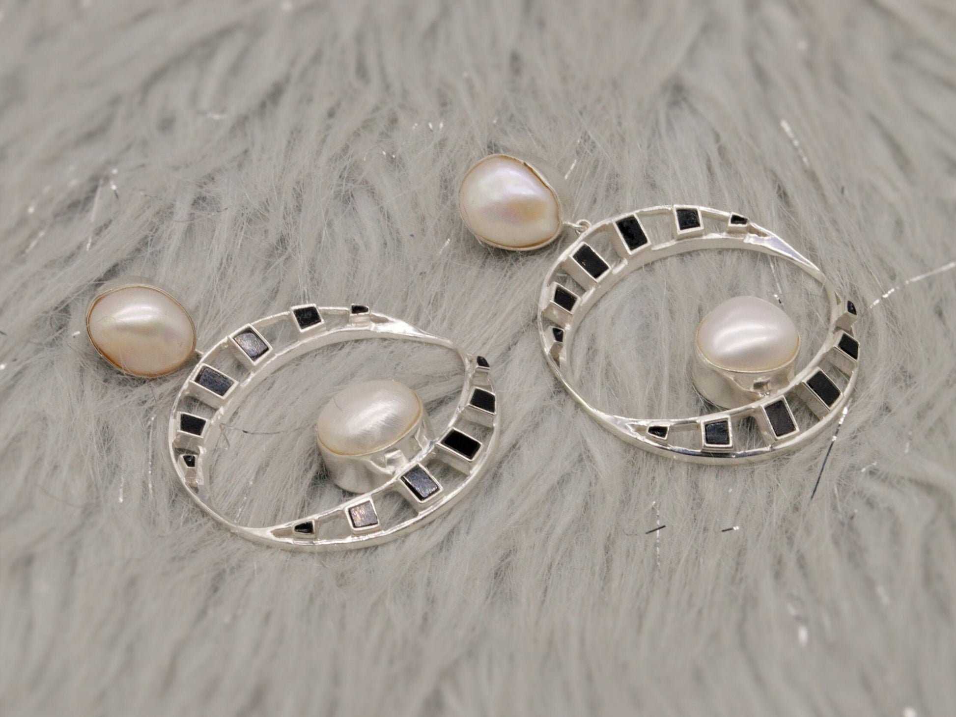 Diese Silberohrringe mit Perlen und schwarzem Onyx sind eine atemberaubende Kombination aus Perlen und schwarzem Onyx, dem Geburtsstein für Juni. Sie eignen sich perfekt als Geburtssteinohrringe und zeigen die zeitlose Eleganz von Silberohrringen gepaart mit dem kühnen Charme von schwarzen Onyxohrringen. Diese exquisiten, handgefertigten Edelstein-Ohrhänger aus Sterlingsilber eignen sich ideal als Geburtstagsgeschenk für sie oder als aufmerksames Geschenk für besondere Anlässe. Diese Perlenohrringe sind ein einzigartiges Statement-Stück und verbinden traditionellen Charme mit moderner Raffinesse. Ob Sie nun indische Ohrringe, Silberohrringe oder unverwechselbaren Perlenschmuck lieben, diese Ohrringe sind eine vielseitige Ergänzung für jede Sammlung. Werten Sie Ihren Stil mühelos auf mit dieser raffinierten Mischung aus Edelsteinschmuck und zeitloser Eleganz.