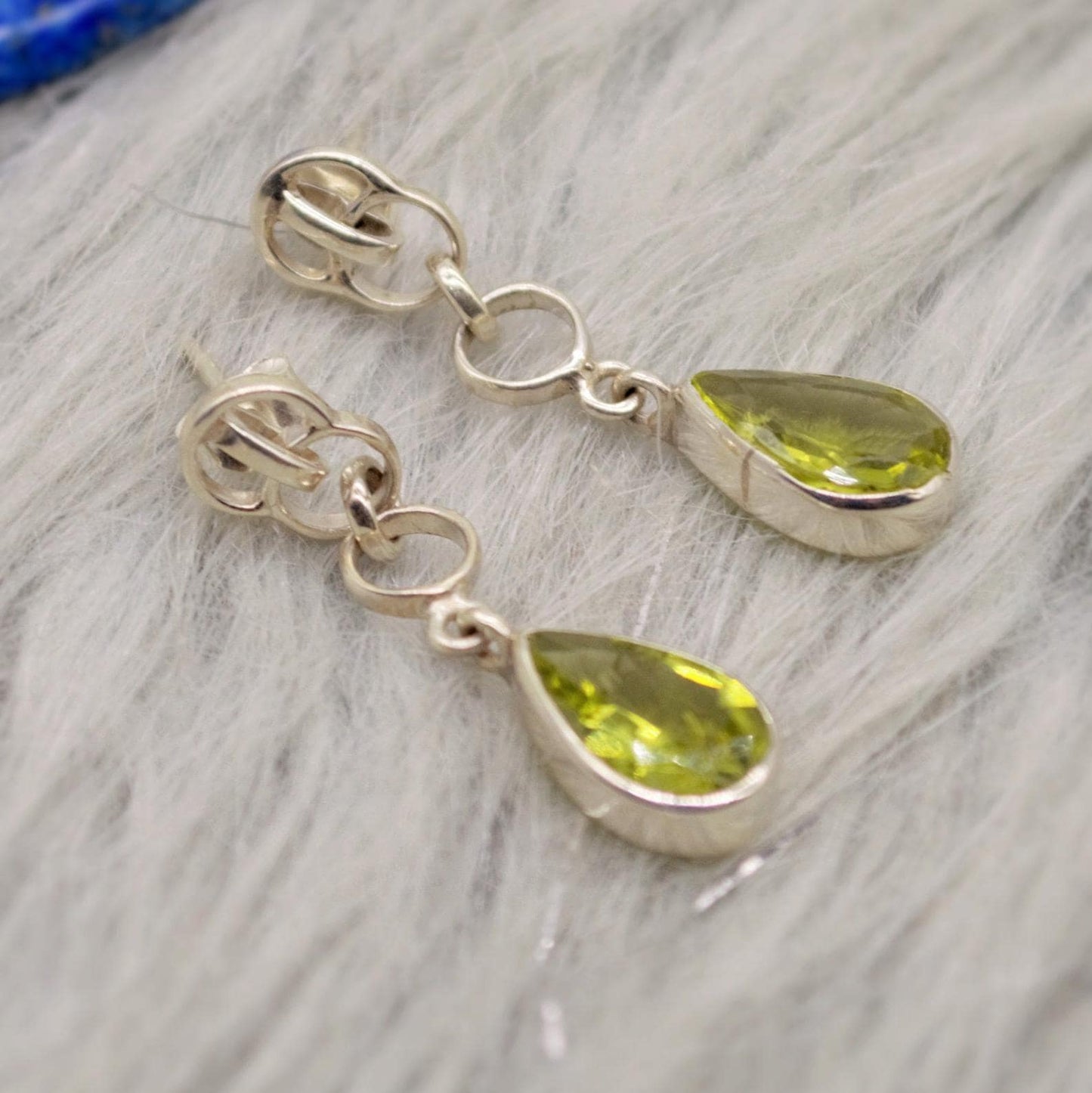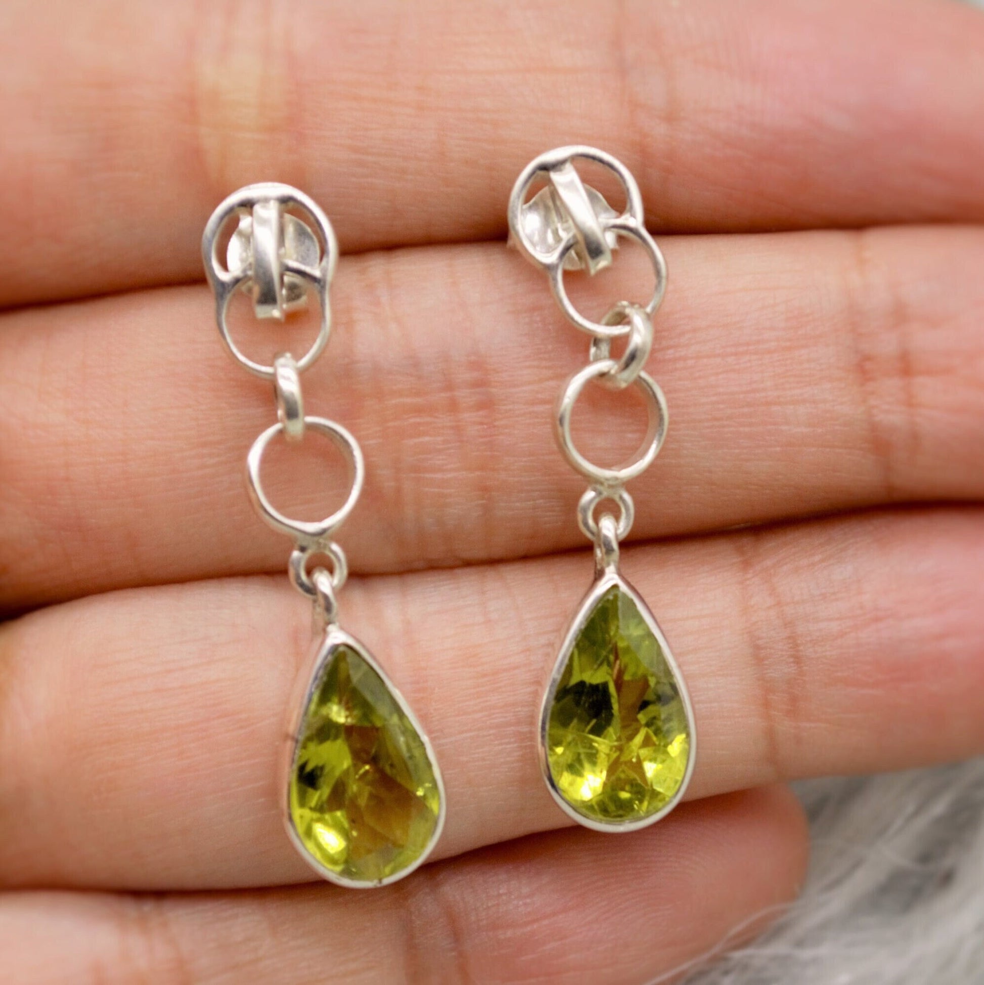 Peridot-Ohrringe, Sterling Silber, August Geburtsstein, Einzigartige Statement-Ohrringe, Grüne Edelstein-Ohrringe, Geschenke für Sie